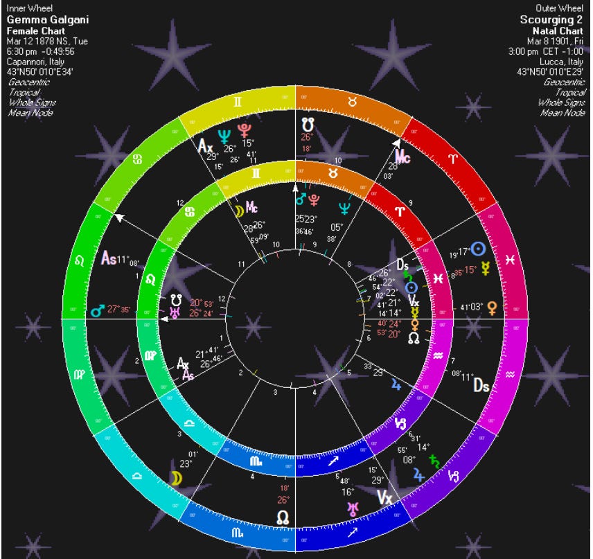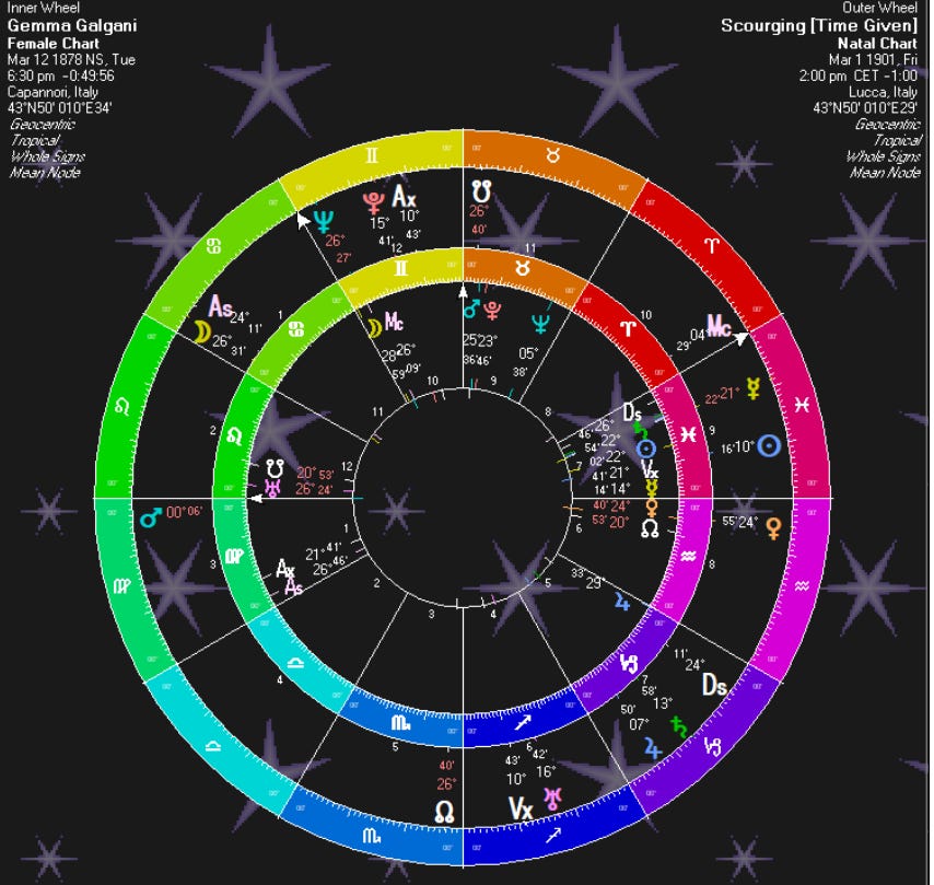 In the first scourging Mars is cusping Leo at 0 Virgo. It is approaching Gemma’s T-Square.