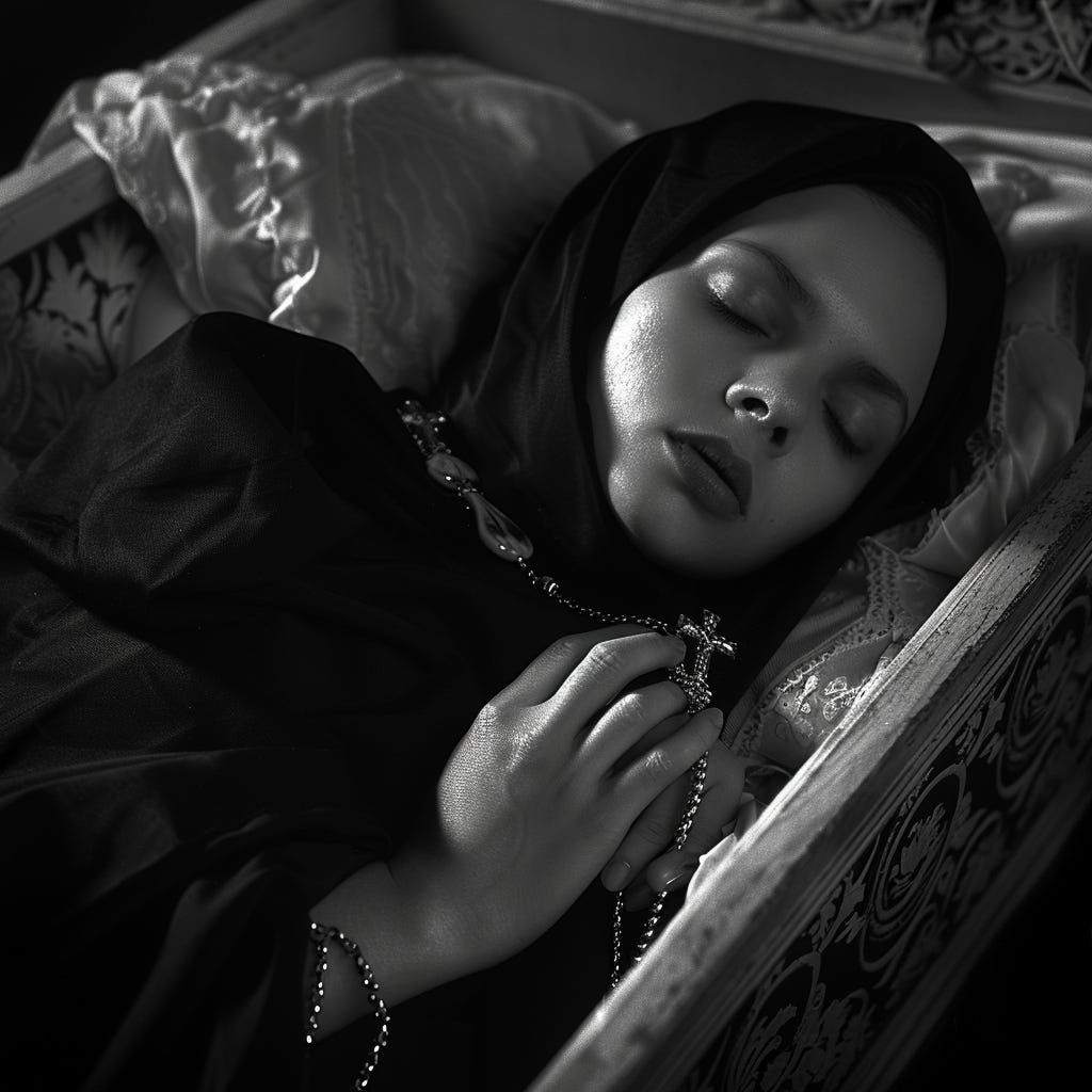 The planetary magnitudes, multiples of the same planets aspecting each other and ruling degrees, continually allow for the discovery of an incorrupt corpse. It looks like that is exactly what was found. Her body can be viewed today.