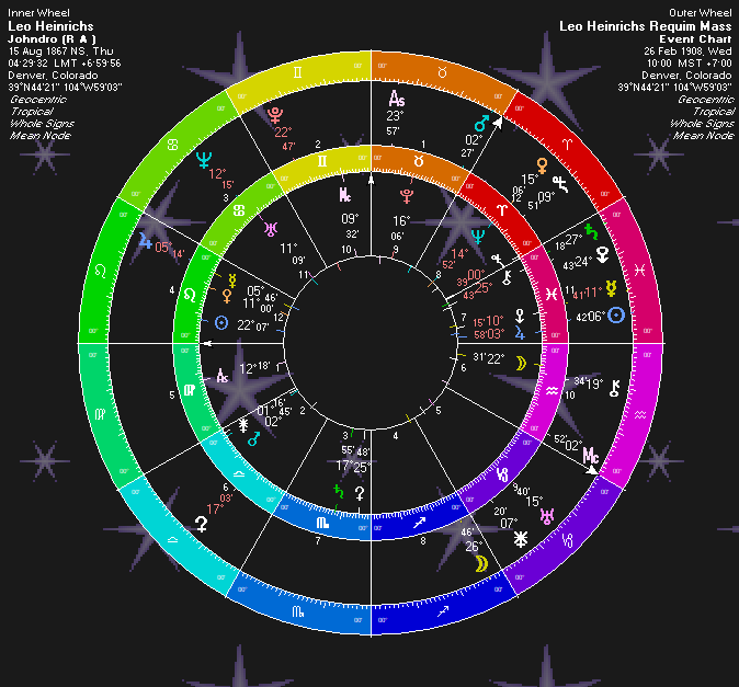 Soon after his death, he had his requiem mass. It was heavily attended, as seen by Transit Venus on his Neptune: “A welcoming (Venus) Group (Neptune);” “Kind (Venus) Believers (Neptune);” “Many (Neptune) Guests (Venus).”