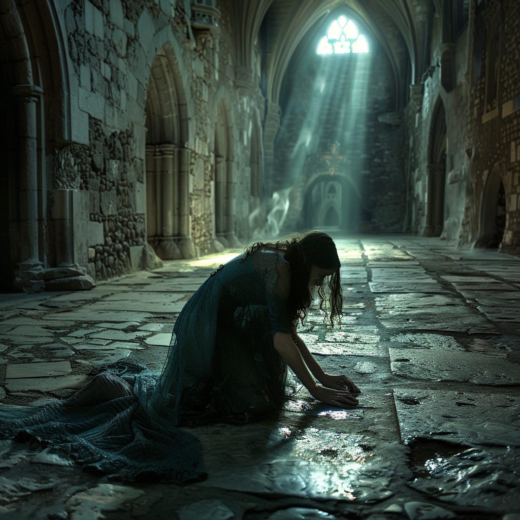 After she found herself alone, she lived as a recluse in her home. One day she heard a voice talking to her. She discovered it to be St. John the Baptist and two other saints who guided her into the Augustinian monastery. There, she found herself inside the locked up monastery. The nuns discovered her apported into the monastery where she told them her story.