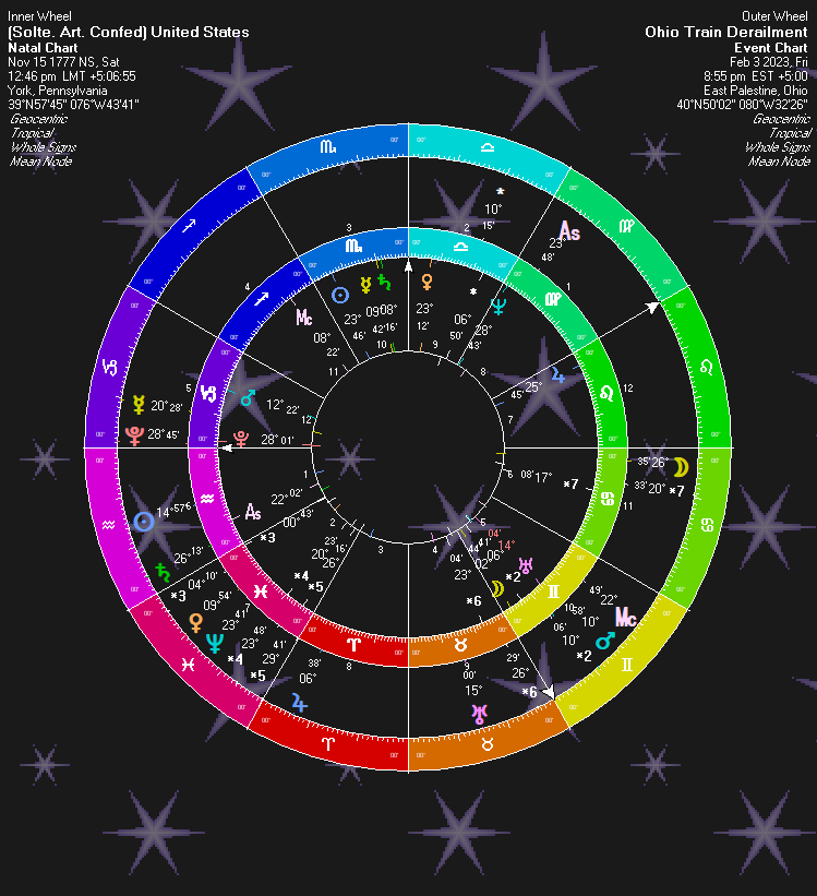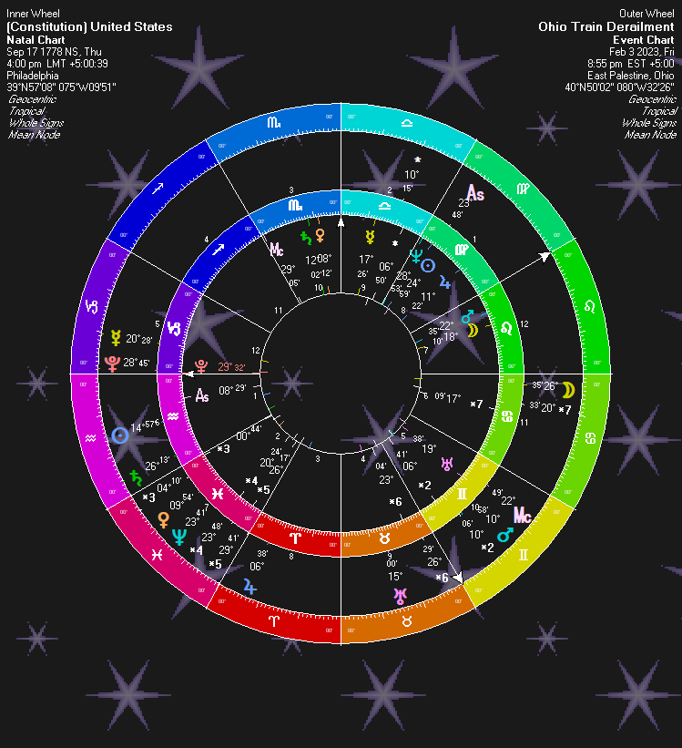 With the train crash in the confusingly named city of East Palestine, Ohio, there is one star that looks to have been responsible for the whole thing. Although stars are more or less fixed in their relative positions in the sky, they become significant when a planet moves into conjunct with that star. In this instance, we have an infamous Royal Watcher star conjunct.