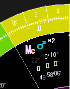 Here, Mars and MC are in House 5 (schools, children, and amusement). Makes no sense. However, Mars is now at inconjunct with Natal Mars in 12 (toxins). So, that does work. Transit Uranus is maleficing House 4, as well.